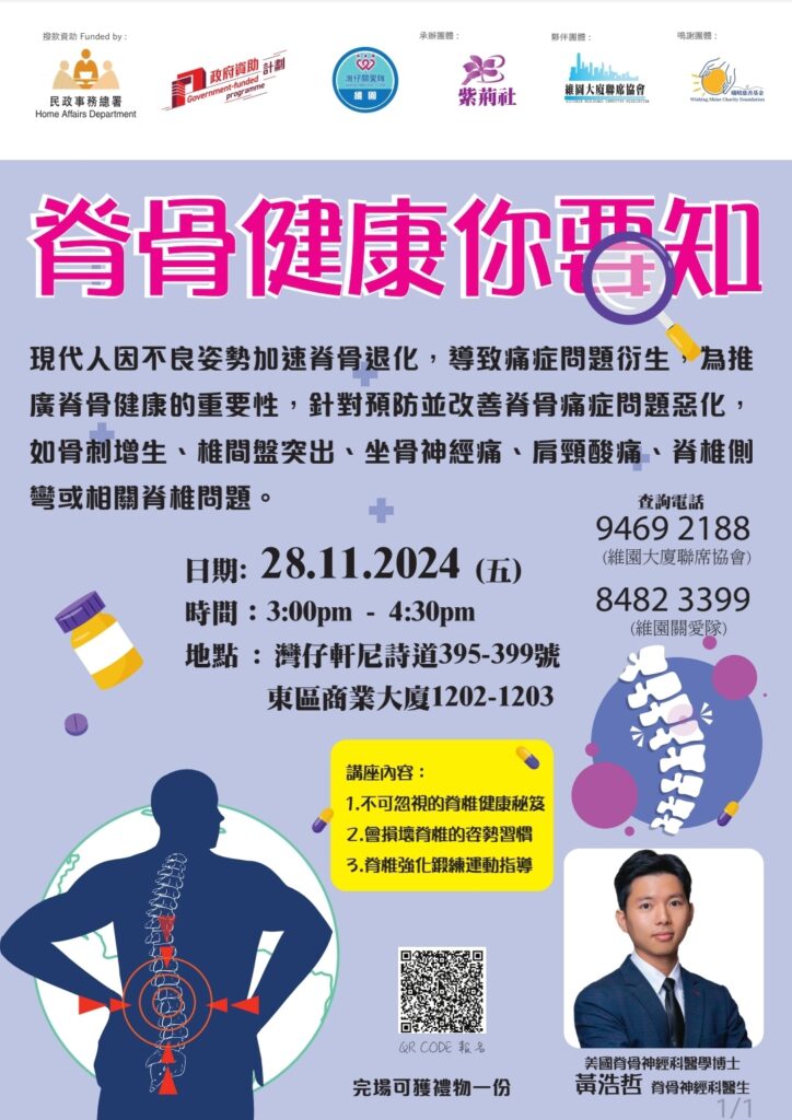 感謝脊骨神經科醫生 黃浩哲先生及灣仔區 維園關愛隊🥰,講座首日就滿額,氣氛很好🎊,最緊要大家學到保養脊骨健康,減輕脊骨受損及所引起的痛症😉。